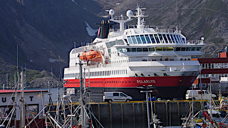 Dieser Fjord ist 95 km lang und an seiner tiefsten Stelle 800 m tief. Und die waldbedeckten Gebirgshänge der Fjorde sind still. Sehr still. Bis auf die Natur und das Rausen der Wasserfälle. Entlang des Fjords gibt es zu beiden Seiten viele hängende Täler. Den fast täglichen einlaufenden Kreuzfahrtschiffen ist es inzwischen untersagt, die so genannten Auslaufmelodien an Deck der Schiffe beim Ablegen abzuspielen. So enden die entschleunigten Landgangstage geräuscharm der Natur geschuldet. Die Schiffe der Hurtigroute haben ein Sonderrecht, kurz vor dem Ablegen ins Schiffshorn zu blasen, um auf die letzte Gelegenheit, an Bord zu gehen, nicht zu verpassen.