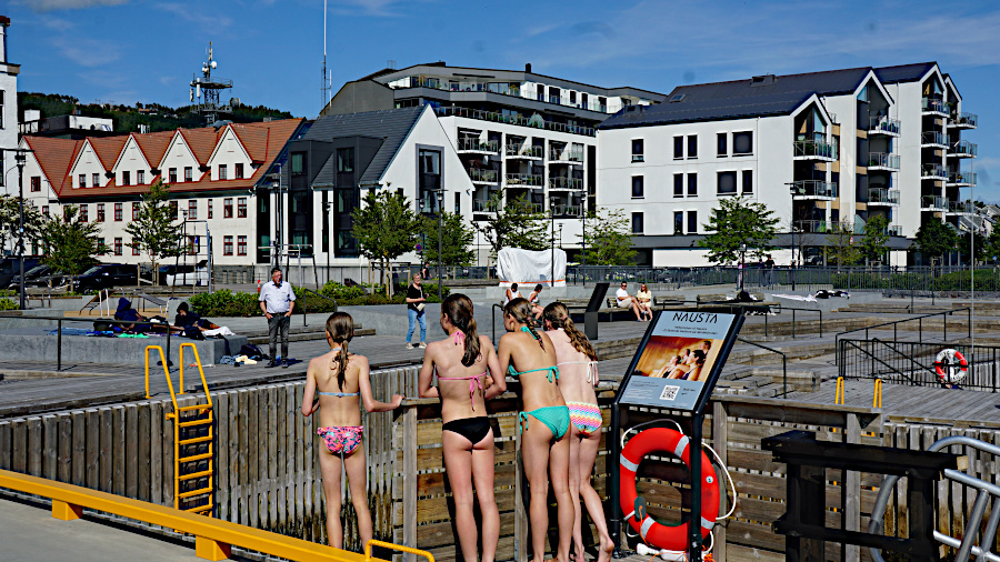 Wo der Rathausplatz am Hafenrand endet, schliesst eine Badestelle und eine Sauna an. Diese Hafenpromenade wurde jüngst im Jahr 2023 neu gestaltet.