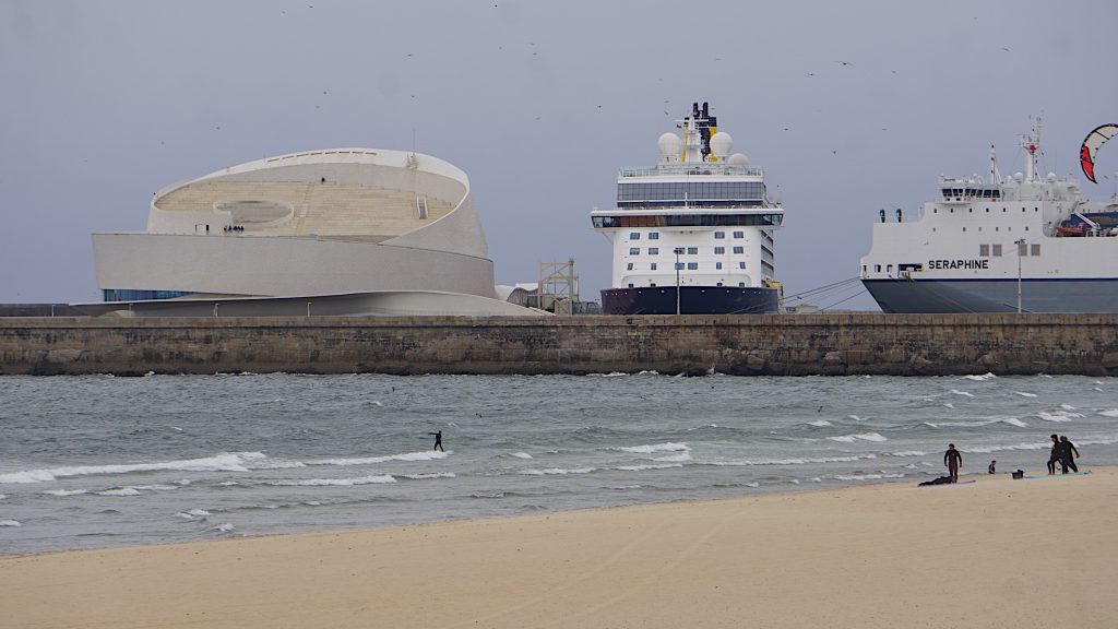 vor Porto liegt das hypermoderne Kreuzfahrt-Terminal Leixöes Cruises