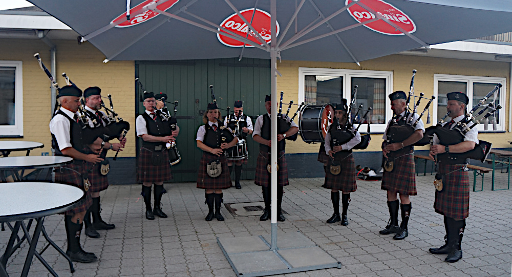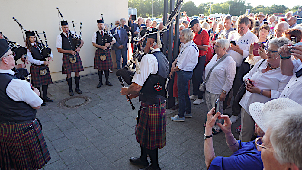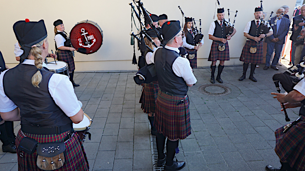 Musikalisch ging es los mit Pauken und Dudelsäcken…