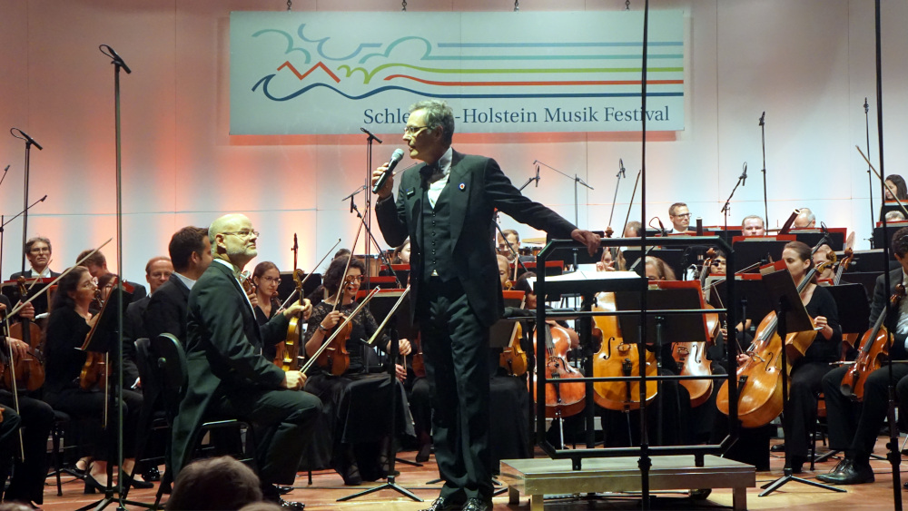Der Schleswig-Holstein Musik Festival Intendant (seit 10 Jahren) Christian Kuhnt begrüßte das ihm zugeneigte Publikum in der seit langem ausverkauften Holstenhalle in Neumünster im August 2025 erneut für einen „Abend in der Royal Albert Hall zu Neumünster Schleswig-Holstein („Zitat Dr.Kuhnt“). 3.300 Zuhörer waren dabei.